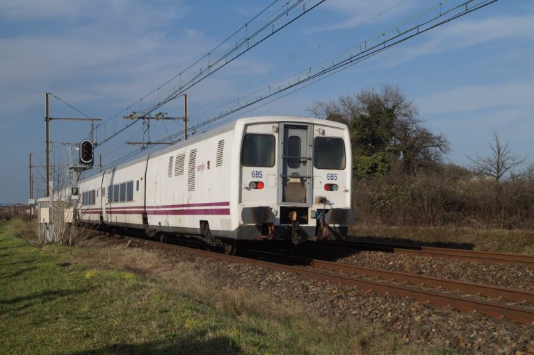 Voici le 27 février 2026 au passage à Laveyron d’une rame Talgo VI de la Renfe entre Barcelone Can Tunis, Perpignan et Forbach (train 444500). En France, traction par une DE 18 de la société Rail Adventure. La rame partant…